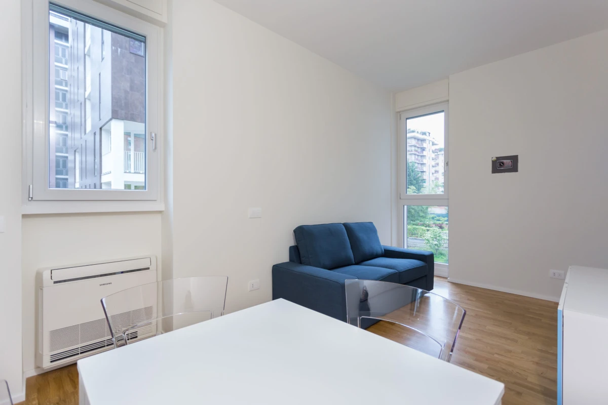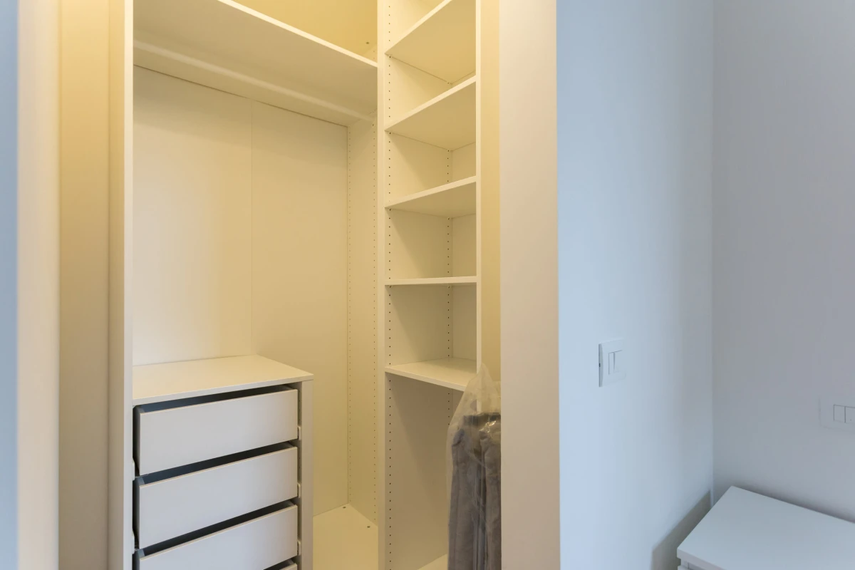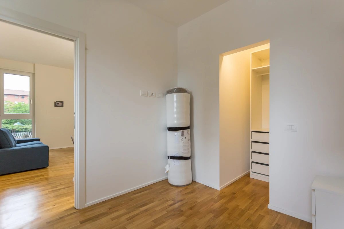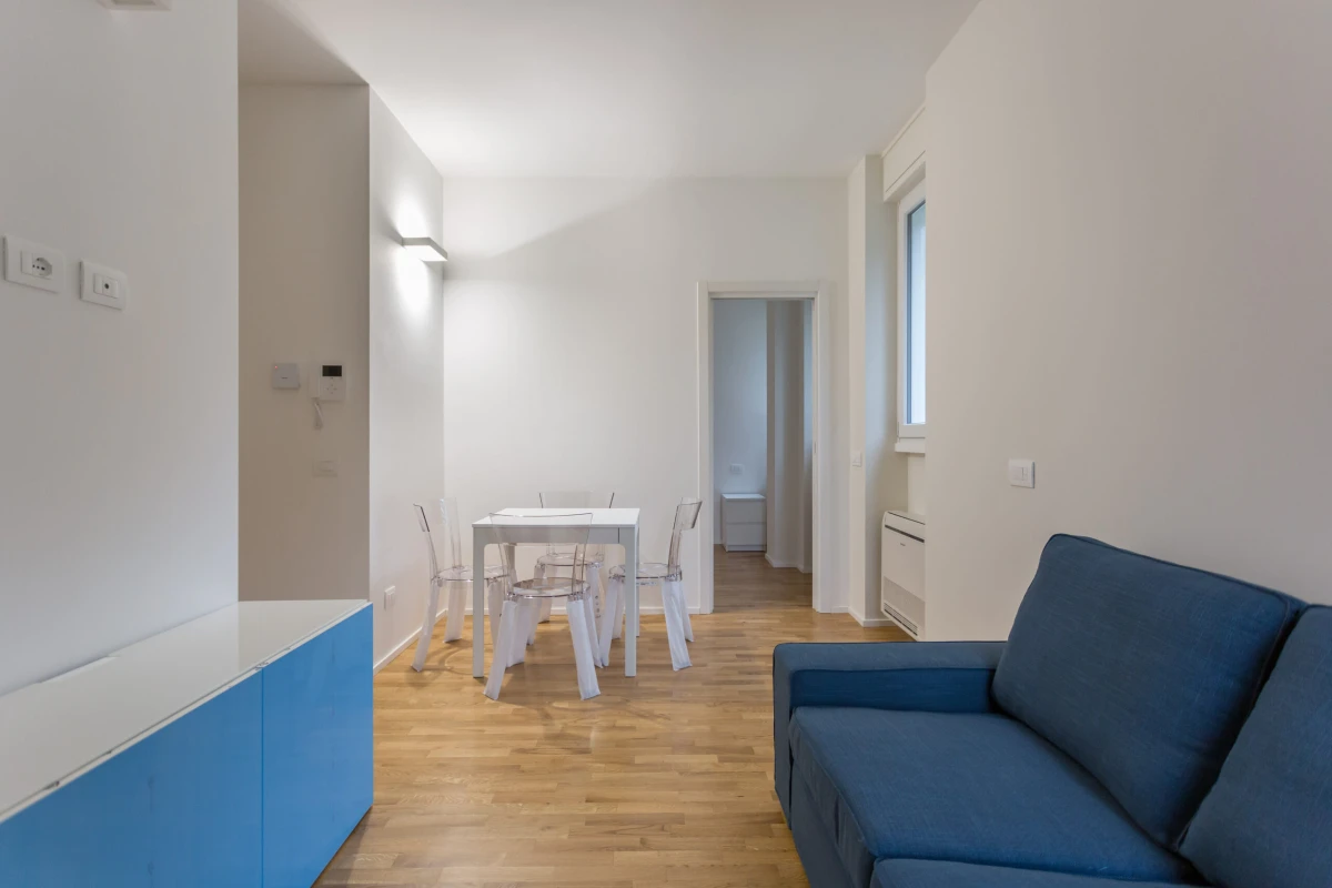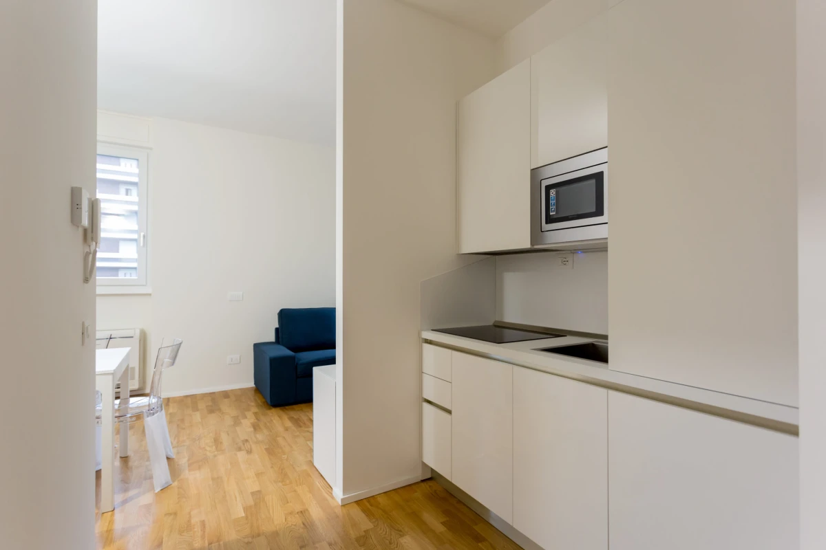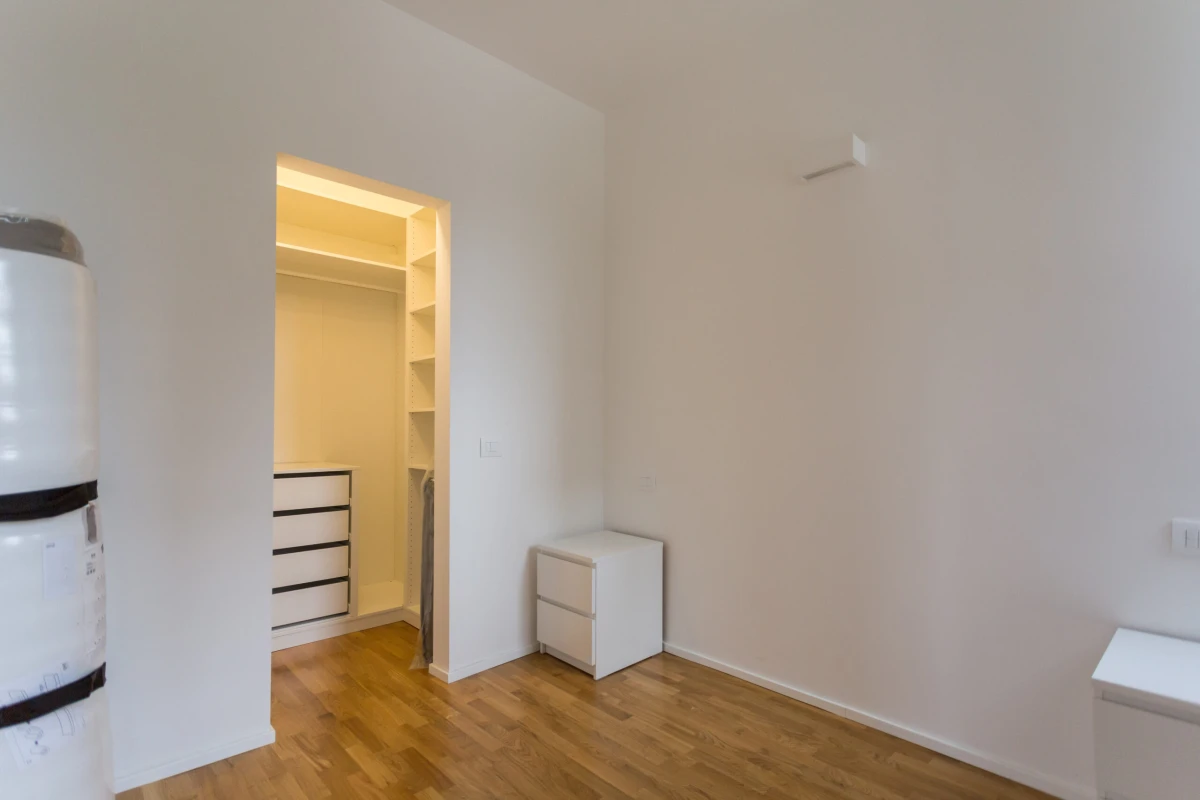 L’appartamento è composto così come segue: ingresso, zona living, angolo cottura, camera da letto matrimoniale con cabina armadio, bagno e ripostiglio.