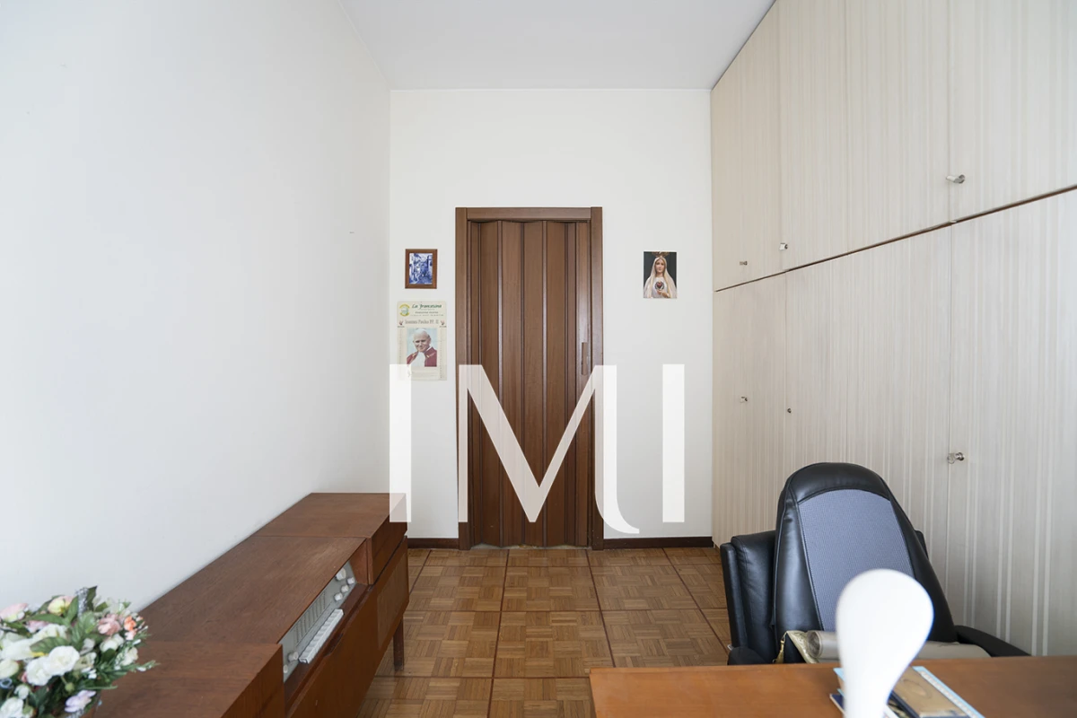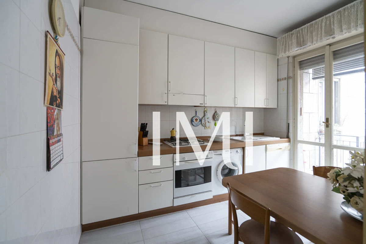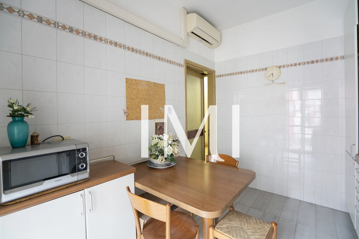 L’appartamento è composto da ingresso, soggiorno doppio, cucina abitabile, due camere da letto, studio, bagno e due balconi. Completa la proprietà una cantina di pertinenza.