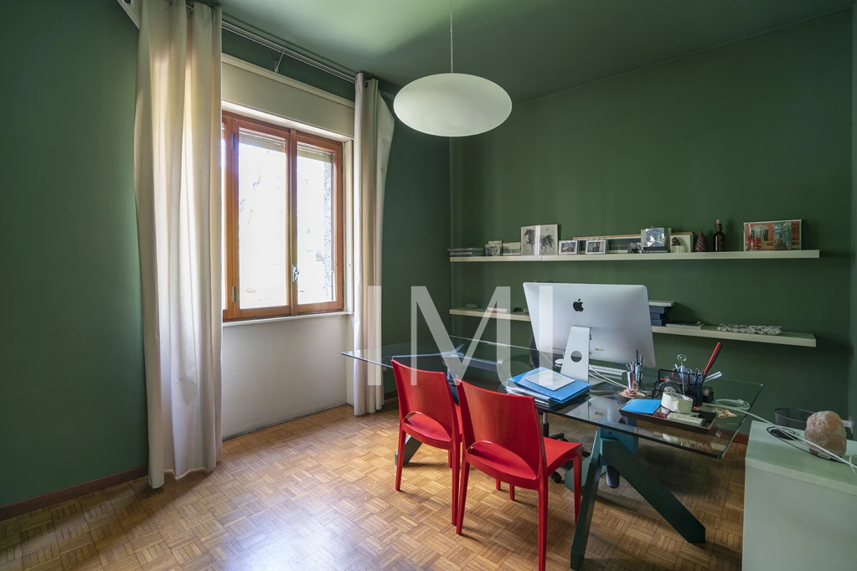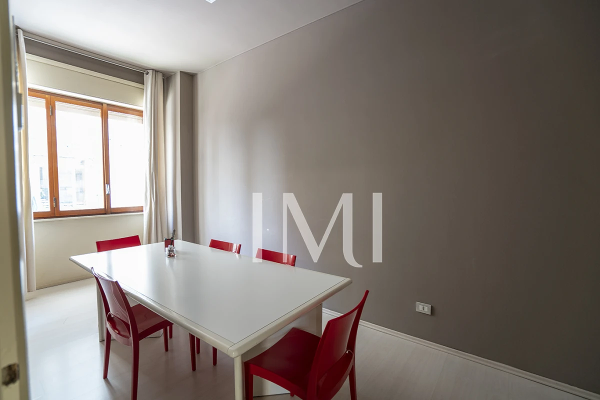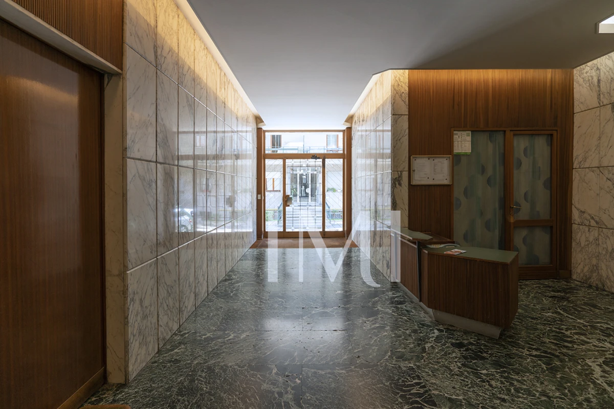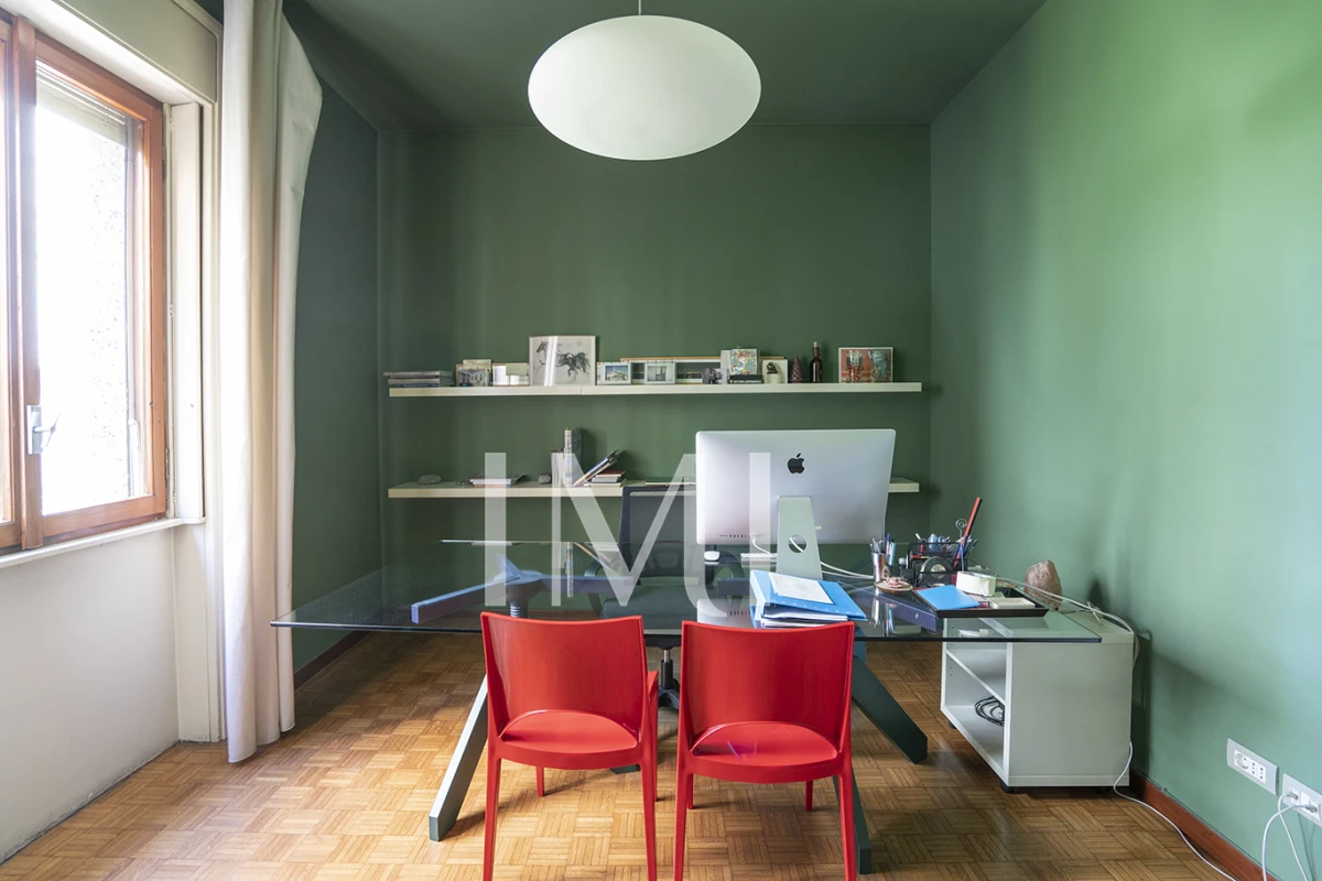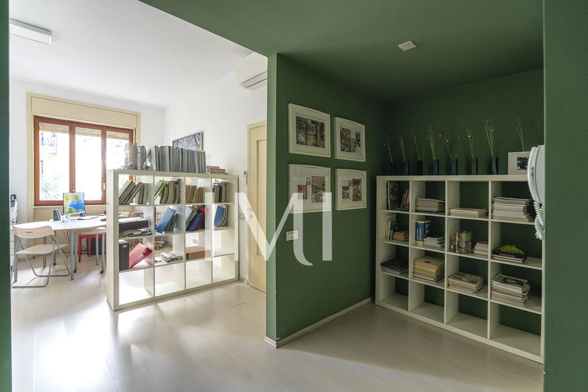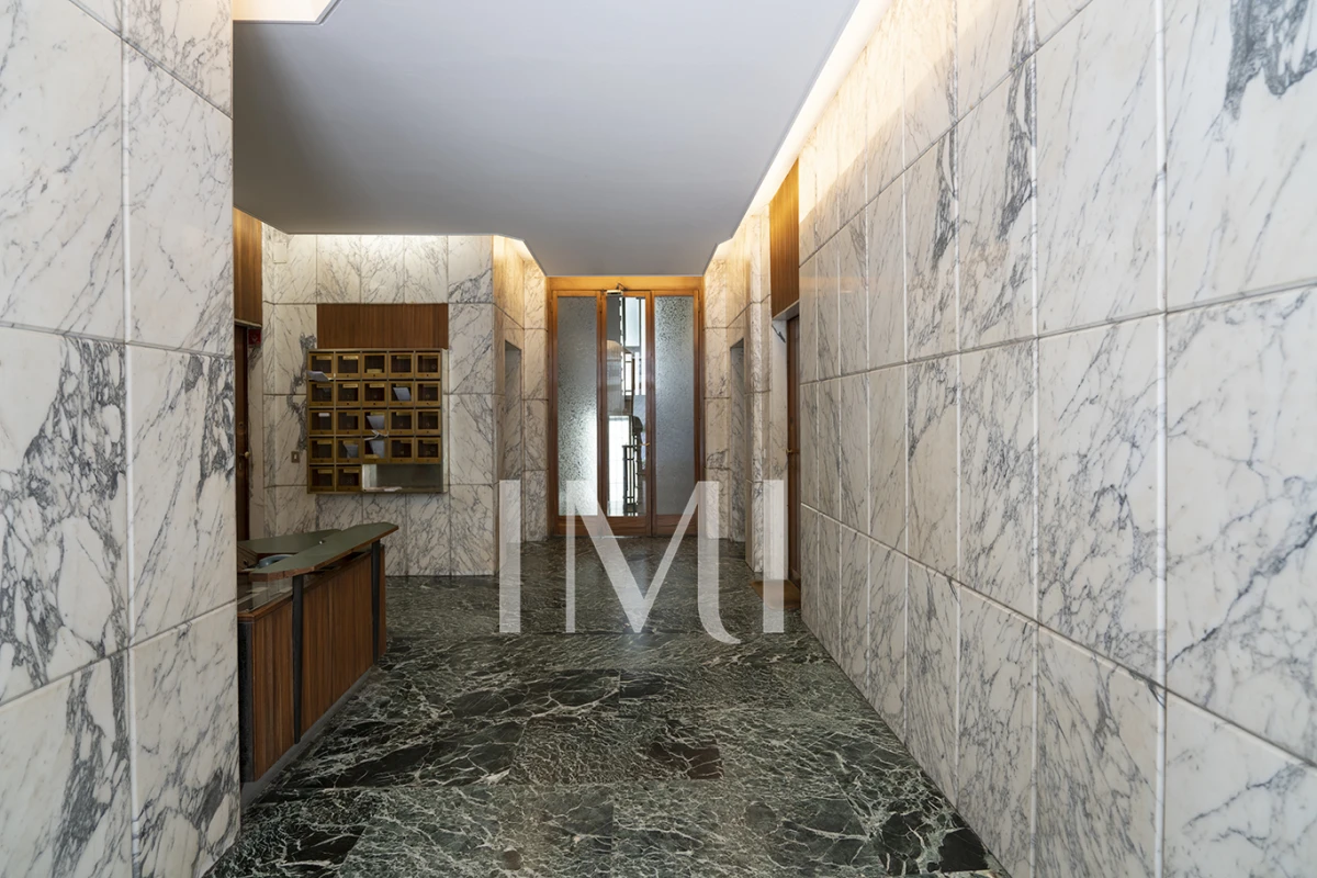 Attualmente adibito a uso ufficio, l’immobile si presta perfettamente a una trasformazione in abitazione, grazie alla sua disposizione interna: ingresso, soggiorno doppio spazioso e luminoso, due camere da letto, cucina e bagno. L’esposizione nord-sud garantisce un ambiente piacevole e ben arieggiato. Dotato di doppio ascensore e un servizio di portineria attivo per l’intera giornata.