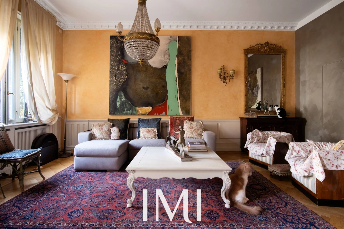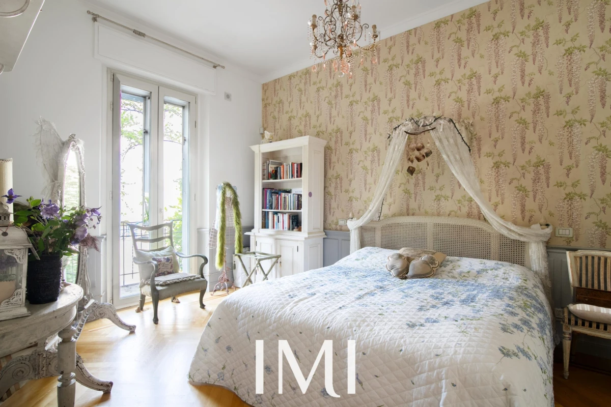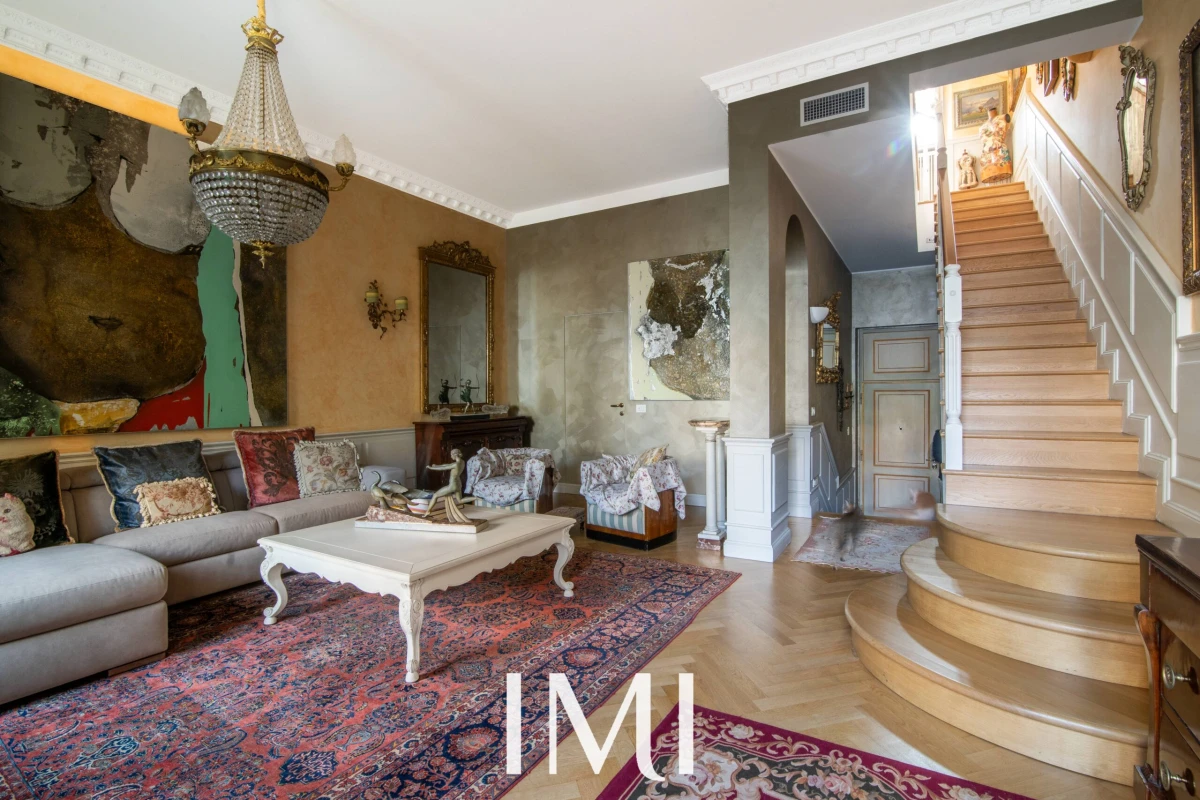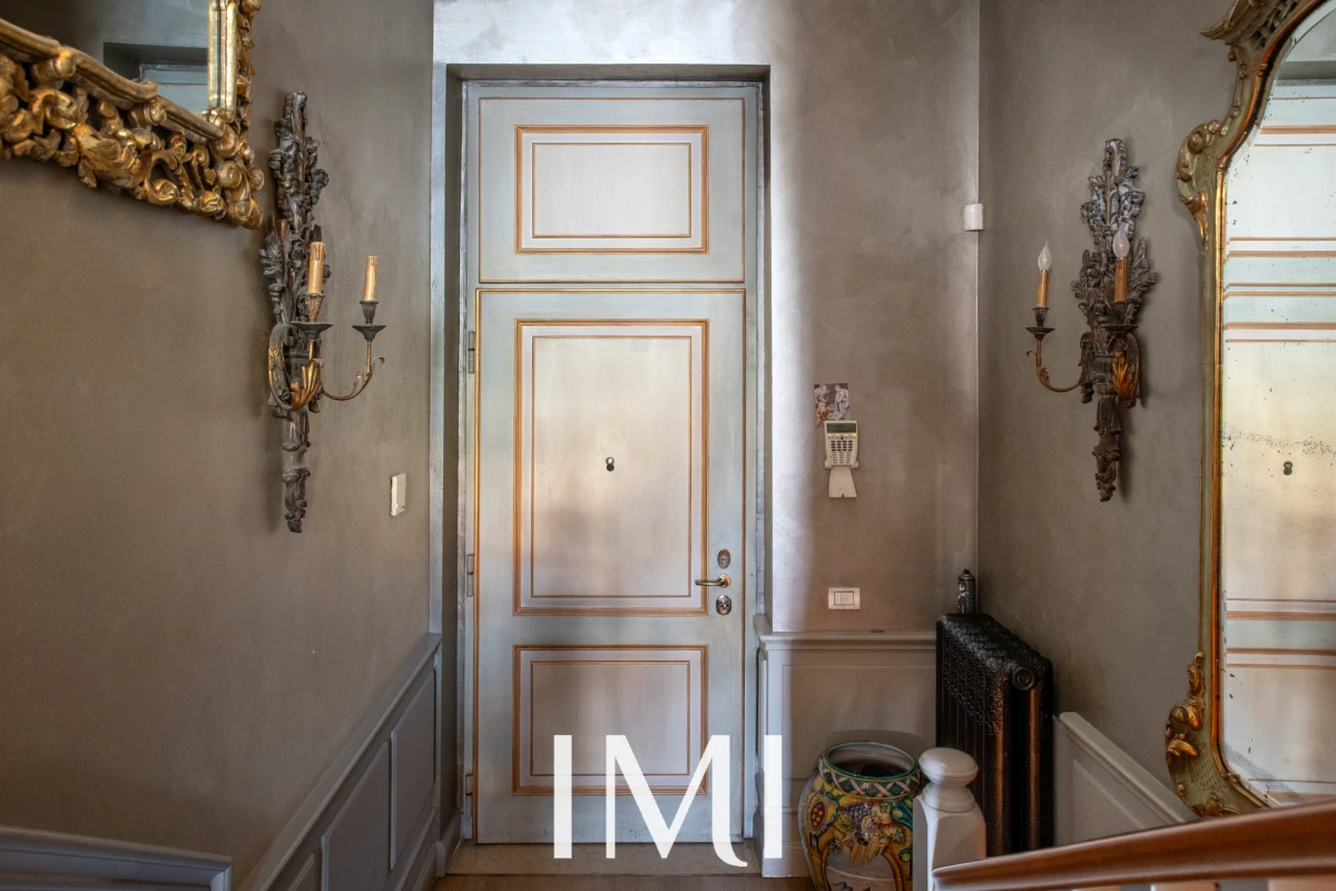Tre balconi e la doppia esposizione garantiscono luminosità naturale durante tutto l’arco della giornata, mentre i soffitti d’epoca e i dettagli architettonici originali dialogano armoniosamente con il comfort contemporaneo.