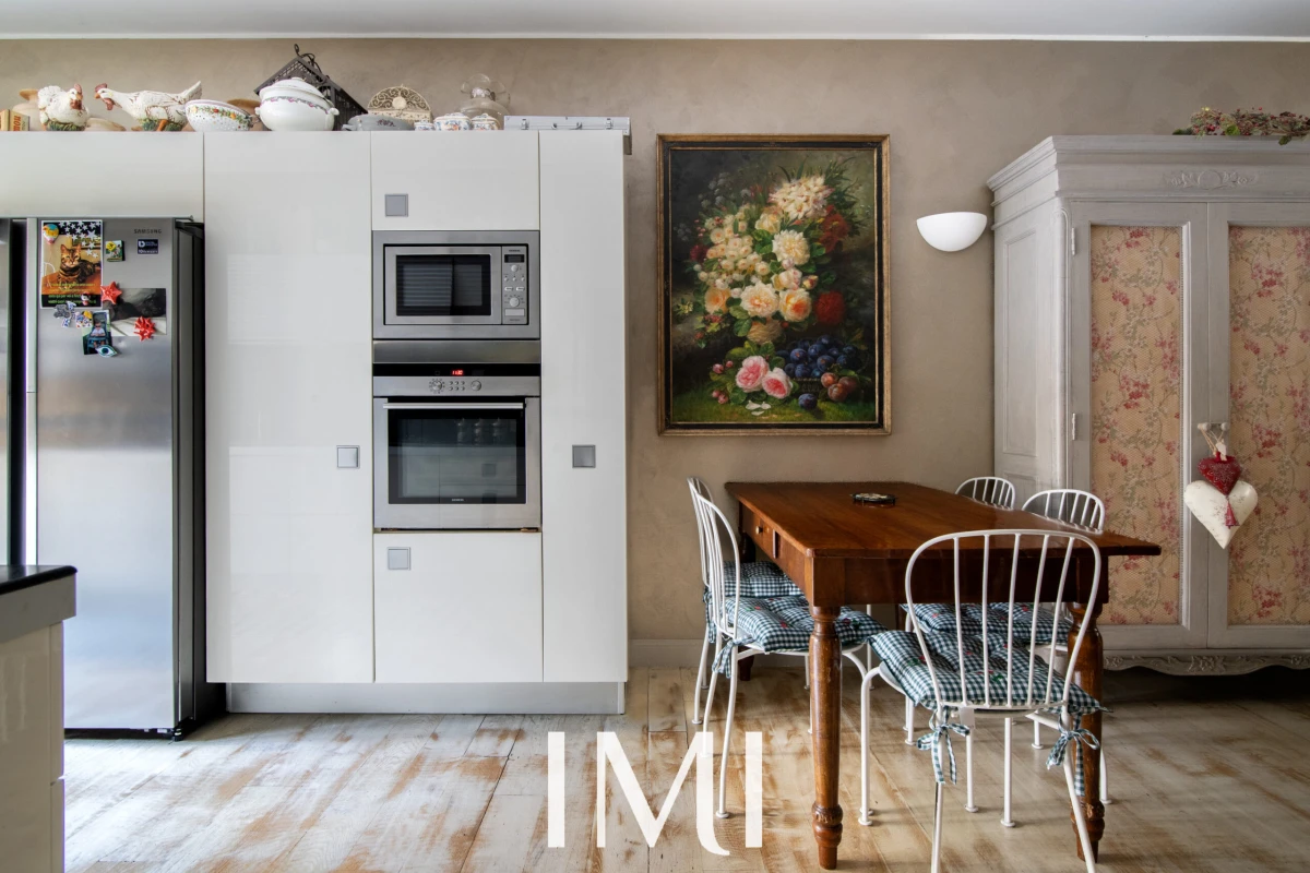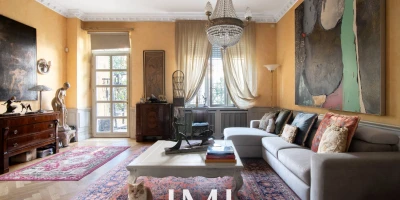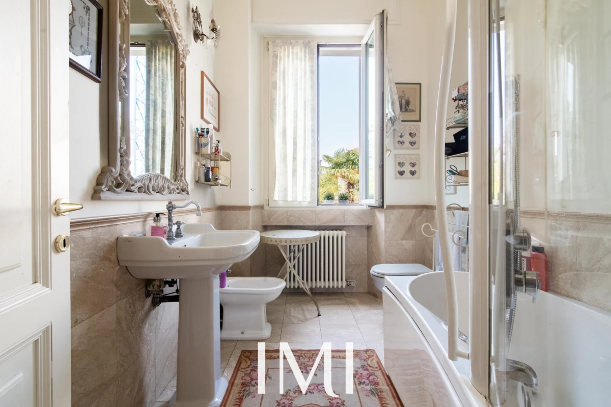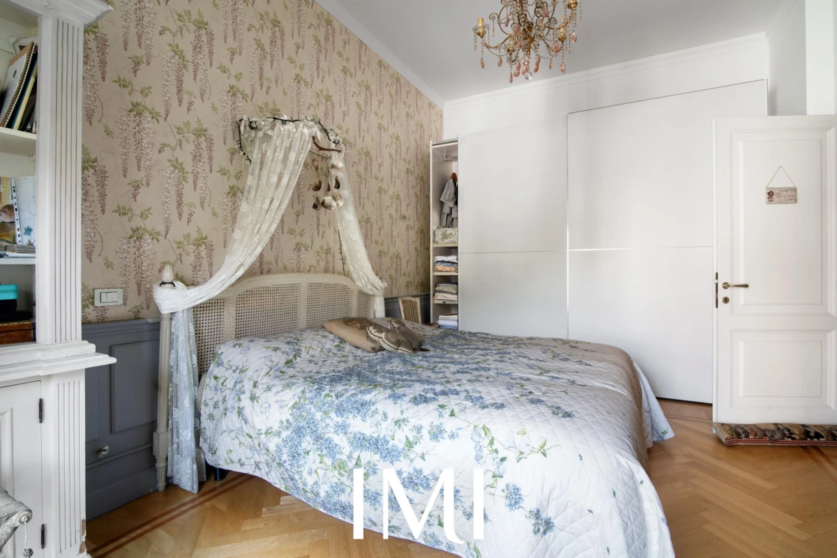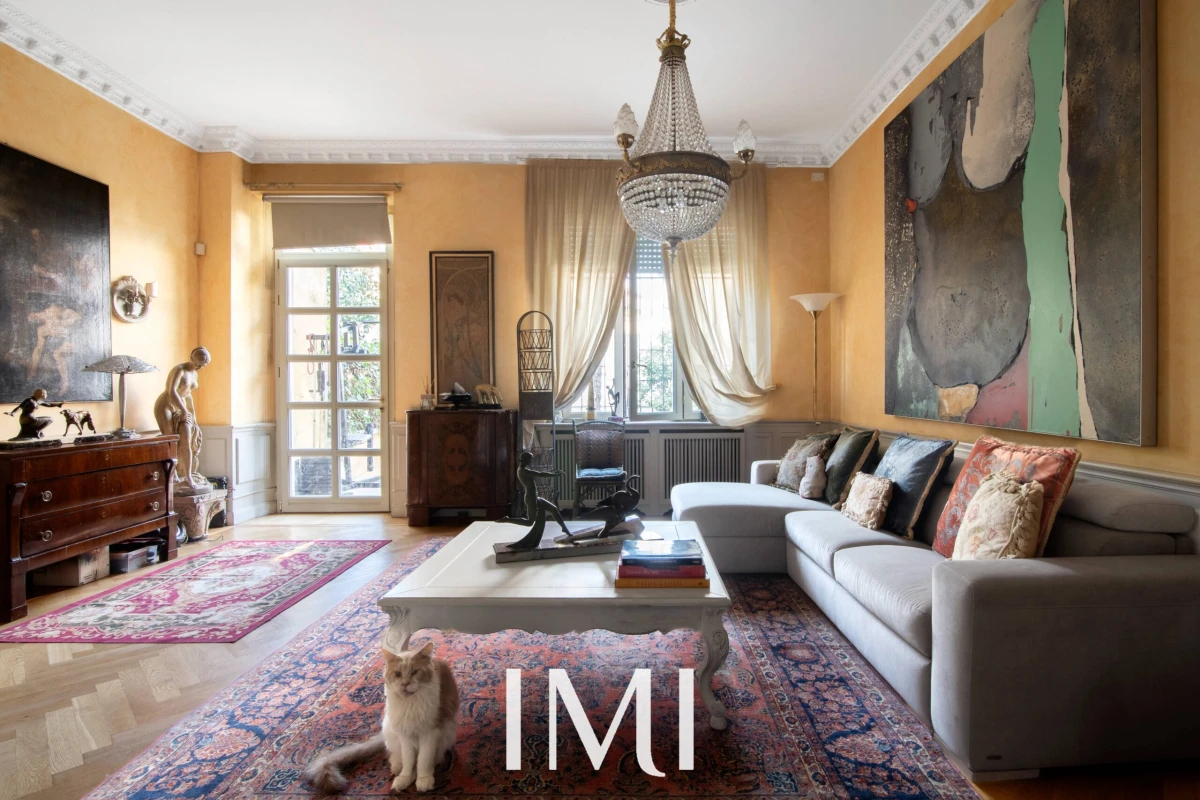 Tre balconi e la doppia esposizione garantiscono luminosità naturale durante tutto l’arco della giornata, mentre i soffitti d’epoca e i dettagli architettonici originali dialogano armoniosamente con il comfort contemporaneo.